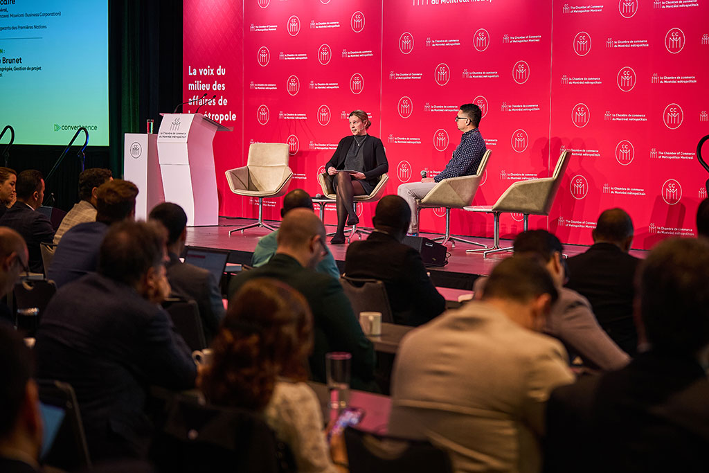 En introduction, Michel Leblanc a rappelé l’importance de la transition énergétique dans le virage vert des entreprises. S’appuyant sur les données du sondage réalisé par la Chambre en collaboration avec Léger dans le cadre de l’initiative convertgence, il a souligné l’importance de l’accompagnement et de la prévisibilité pour réussir la transition dans un contexte économique toujours difficile pour le milieu des affaires.