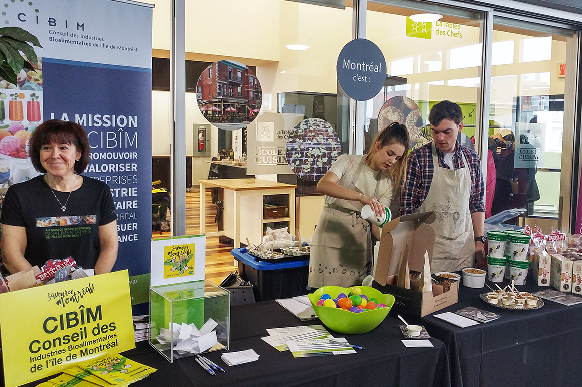 Quatorze entreprises montréalaises (producteurs, transformateurs et organismes) ont accueilli les quelque 1000 visiteurs sur la mezzanine du marché afin de faire découvrir et de faire déguster des produits de l’industrie bioalimentaire de Montréal. Parmi ces entreprises, le CIBÎM et quatre de ses membres : Aliments Cibles, Délicouki, Gusta et Oatbox.
