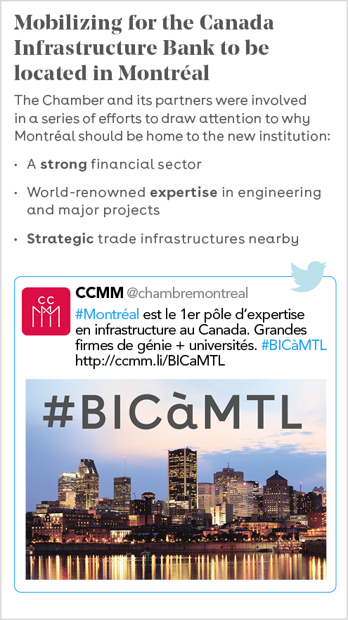 Mid-year report: read the Chamber’s notable position statements February 9, 2017 Print Share on: Facebook Twitter LinkedIn Highlights July to December 2016: learn more about the Chamber’s noteworthy positions Mid-year report July to December 2016 INFRASTRUCTURE TAXATION AND ECONOMY LABOUR INTERNATIONAL ENERGY TRANSITION ENTREPRENEURSHIP OTHER ISSUES Infrastructure Taxation and economy Labour International Energy transition Entrepreneurship Other issues <