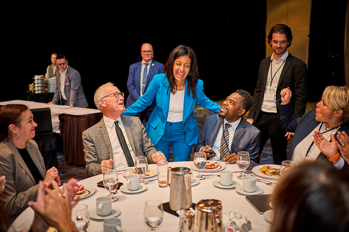Le 20 septembre dernier, la Chambre a reçu Mme Dominique Anglade, cheffe du Parti libéral du Québec, dans le cadre de la série de causeries politiques organisées en prévision des élections du Québec 2022.