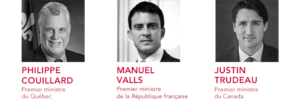 La Chambre de commerce du Montréal métropolitain, dans le cadre de la série Leaders internationaux Bell, en partenariat avec la Chambre de Commerce et d’Industrie Française au Canada, le Conseil des relations internationales de Montréal et les Conseillers du commerce extérieur de France, vous invite à une tribune spéciale, le 13 octobre prochain, où le premier ministre de la République française, Manuel Valls, le premier ministre du Québec, Philippe Couillard, et le premier ministre du Canada, Justin Trudeau, échangeront sur les occasions d’affaires découlant de la mise en œuvre de l’Accord économique et commercial global (AECG) entre le Canada et l’Union européenne.