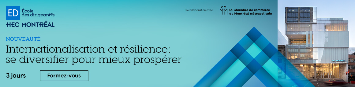 Cette formation de trois jours, offerte en collaboration avec HEC Montréal, offre une compréhension approfondie des transformations mondiales. Vous y apprendrez à anticiper les futurs possibles et à établir les bases d’une stratégie de diversification durable.