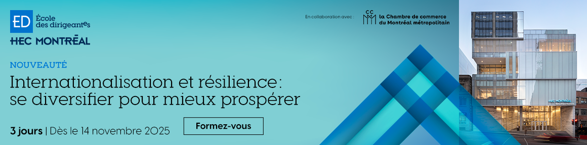 Cette formation de trois jours, offerte en collaboration avec HEC Montréal, offre une compréhension approfondie des transformations mondiales. Vous y apprendrez à anticiper les futurs possibles et à établir les bases d’une stratégie de diversification durable.